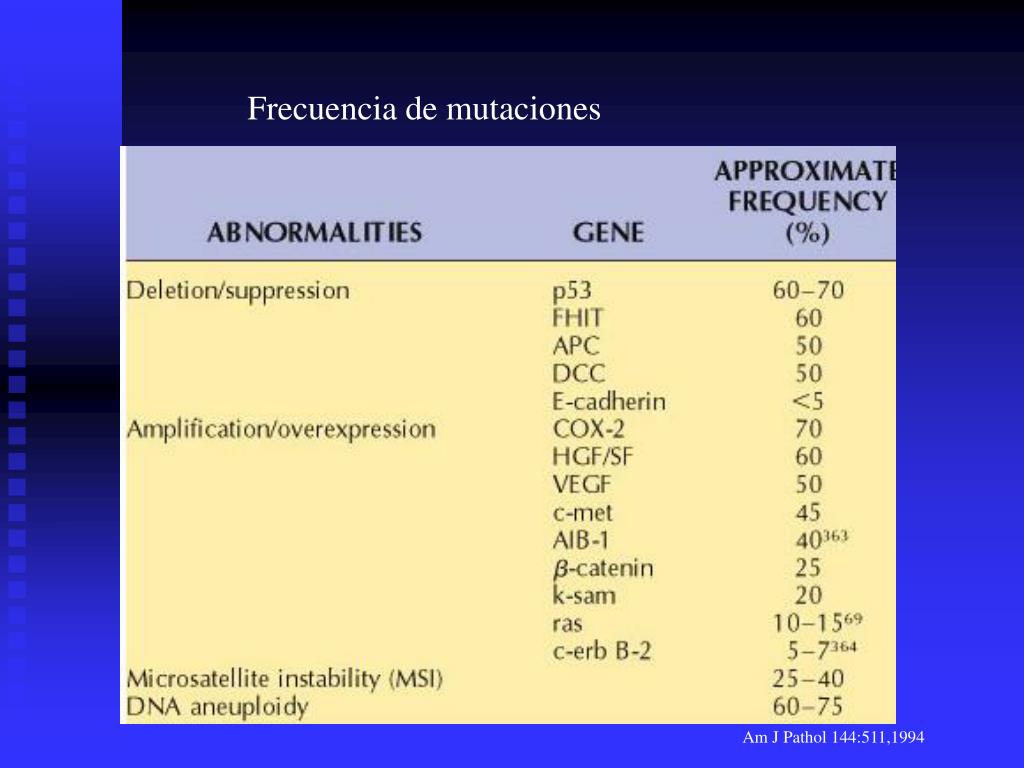 Frecuencia de mutaciones Am J Pathol 144:511,1994