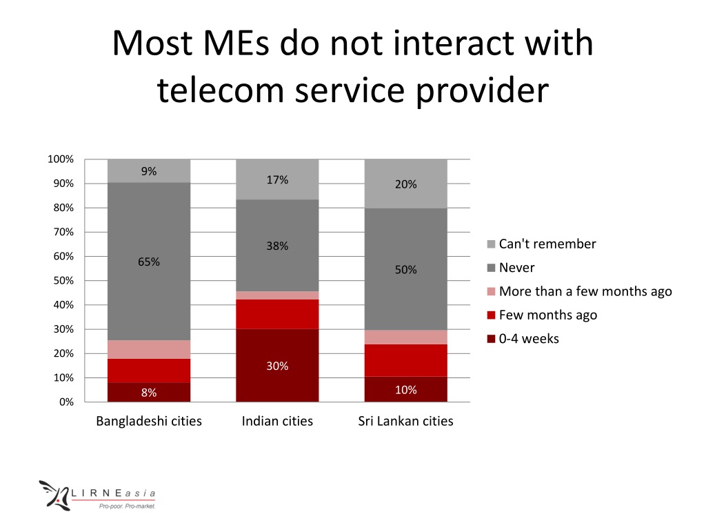 Is this something worth doing in the Pacific? • Given small populations, perhaps could be done for all consumers, not just urban, poor micro enterprises • LIRNEasia will be happy to share questionnaires, protocols, etc.