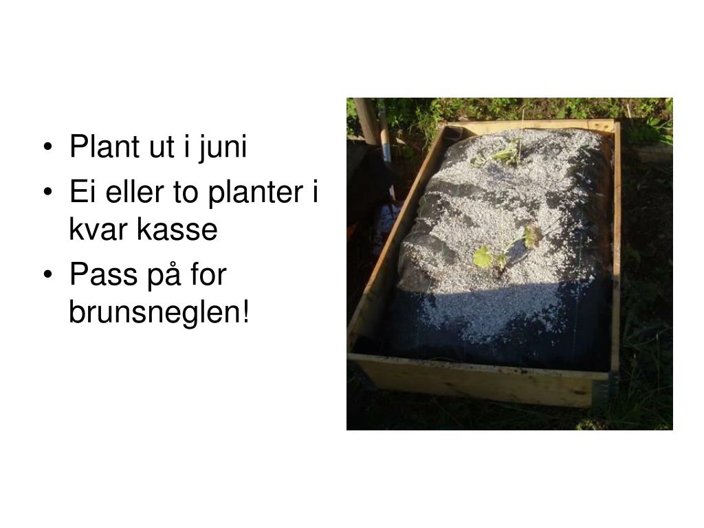 Plant ut i juni • Ei eller to planter i kvar kasse • Pass på for brunsneglen!