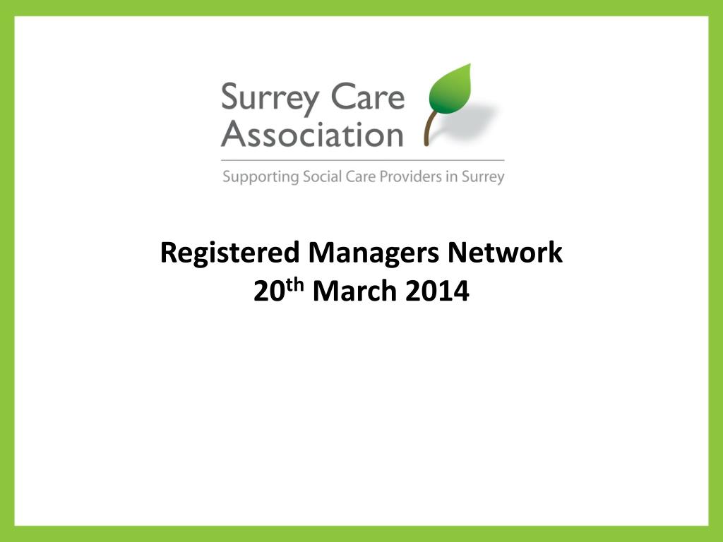 Registered Managers Network 20 th March 2014. Registration Regulations Proposed Changes. The Francis Report Fundamental Standards below which care should never fall Care Quality Commission Alan Rosenbach – SCA Conference “A New Start” – November Network Meeting