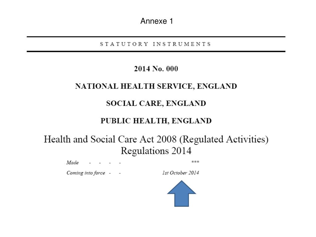 The Francis Report Fundamental Standards below which care should never fall Care Quality Commission Alan Rosenbach – SCA Conference “A New Start” – November Network Meeting Draft Regulations to replace Essential Standards Duty of Candour and Fit and Proper Persons Test. This consultation does not cover the proposed new Duty of Candour or the Fit and Proper Persons requirement for Directors of providers registered with CQC. We will consult separately on each of these proposals, although the intention is to introduce these measures alongside the Fundamental Standards as part of the same set of regulations.