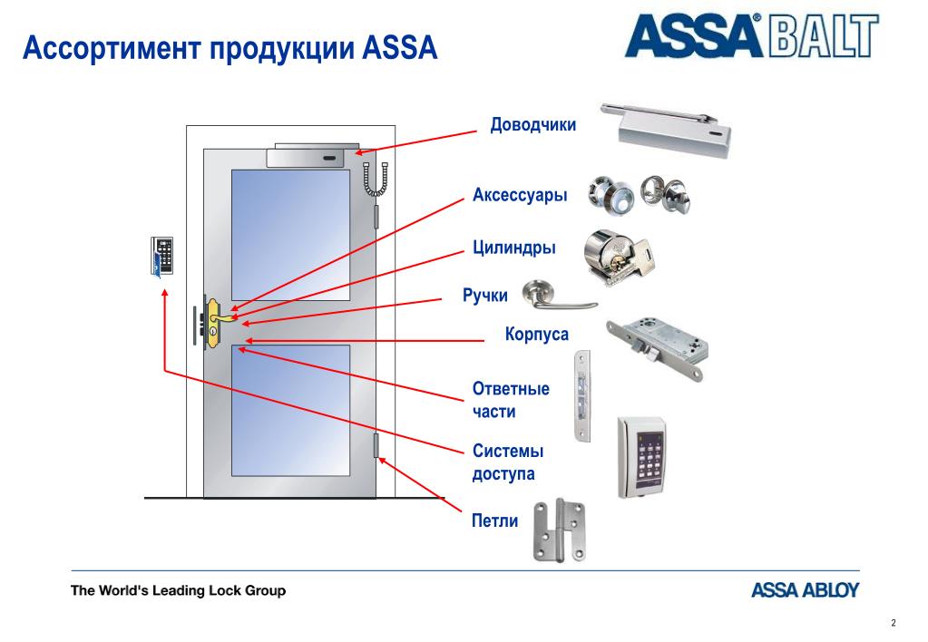 Доводчики Аксессуары Цилиндры Ручки Корпуса Ответные части Петли Системы доступа Ассортимент продукции ASSA