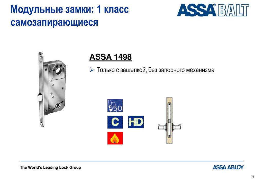 Модульные замки: 1 класссамозапирающиеся • ASSA 1498 • Только с защелкой, без запорного механизма