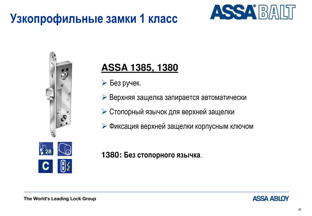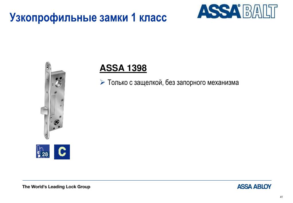 28 Узкопрофильные замки 1 класс • ASSA 1398 • Только с защелкой, без запорного механизма