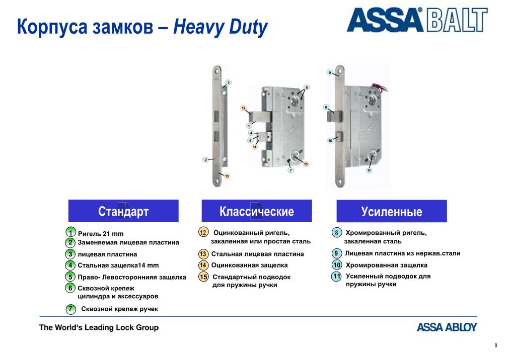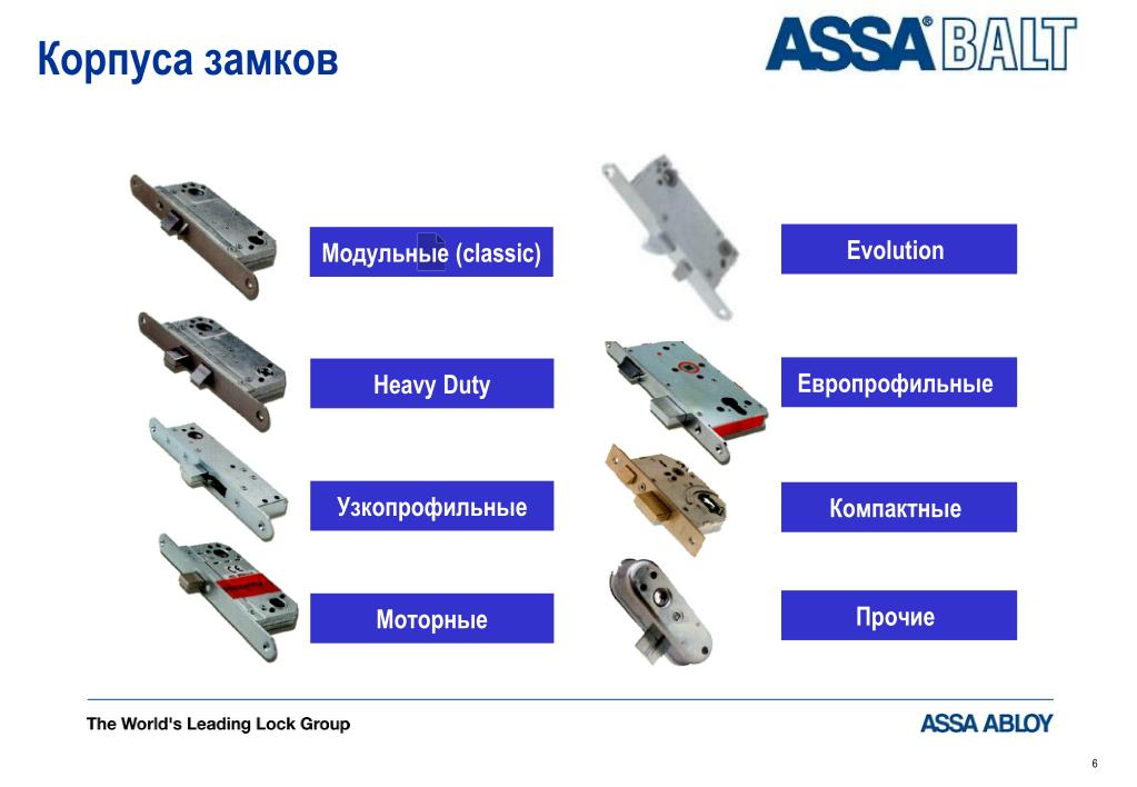 Продукция ASSA. Доводчики. Аксессуары. Цилиндры. Ручки. Корпуса. Ответные части. Петли. Системы доступа. Ассортимент продукции ASSA. Структура замка. Структура замка. Корпуса замков. Evolution. Модульные (classic). Европрофильные. Heavy Duty. Узкопрофильные. Компактные.