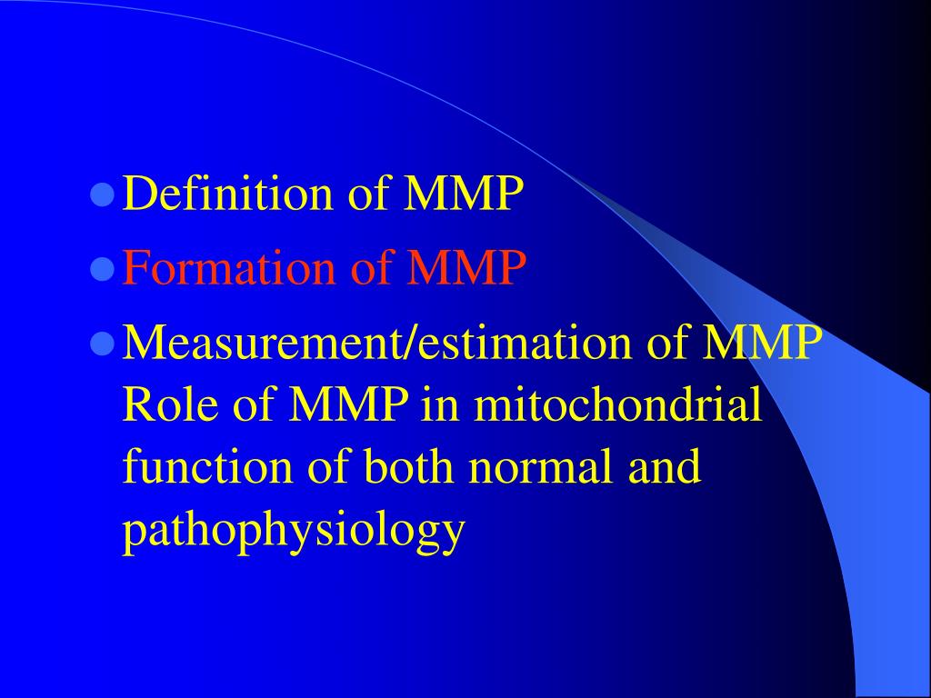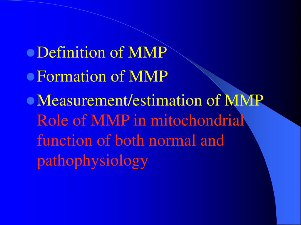 Contents • Definition of MMP • Formation of MMP • Measurement/estimation of MMP Role of MMP in function of both normal and pathophysiology