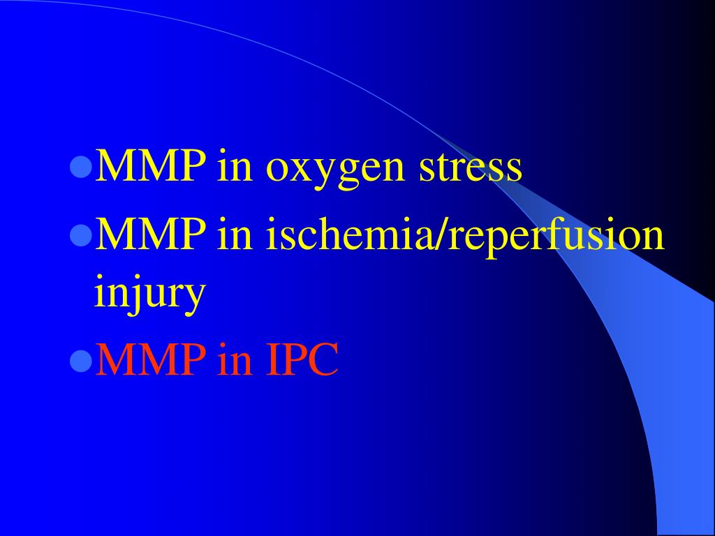 MMP in oxygen stress • MMP in • MMP in ischemia/reperfusion injury • MMP in IPC