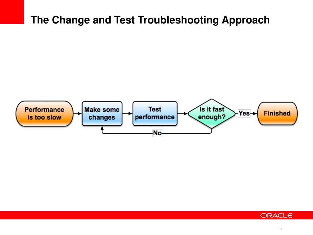 Do you... • Use Google as your first resource? • Use the Oracle Documentation as your second resource? • Believe in tuning databases by changing block size? • Frequently use database parameters to tune queries? • Believe in “Silver Bullet Tuning”? • Blindly apply previously successful solutions? • Practice the “Change and Test” troubleshooting approach?