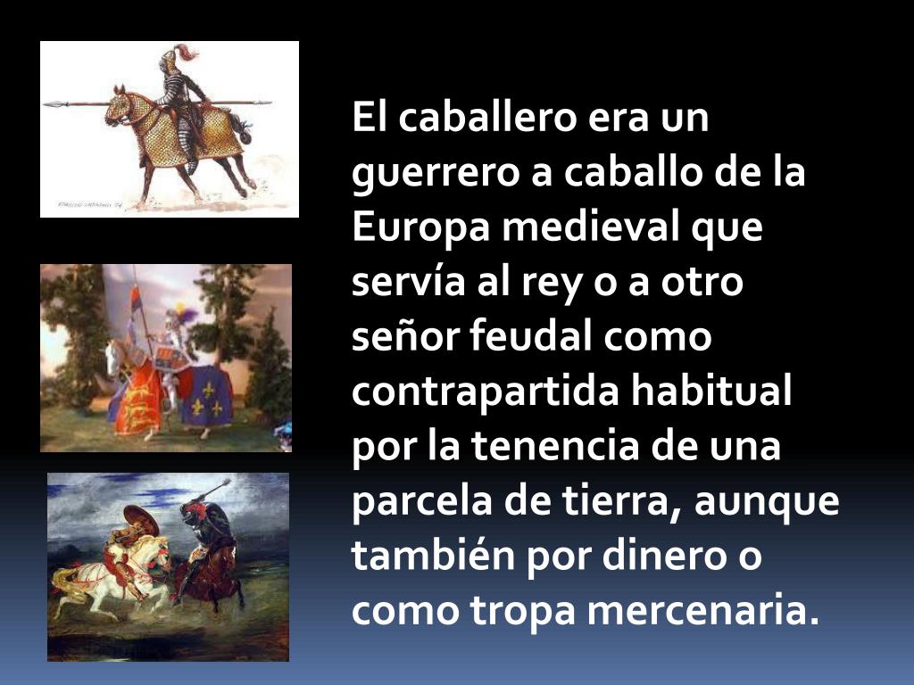 El caballero era un guerrero a caballo de la Europa medieval que servía al rey o a otro señor feudal como contrapartida habitual por la tenencia de una parcela de tierra, aunque también por dinero o como tropa mercenaria.
