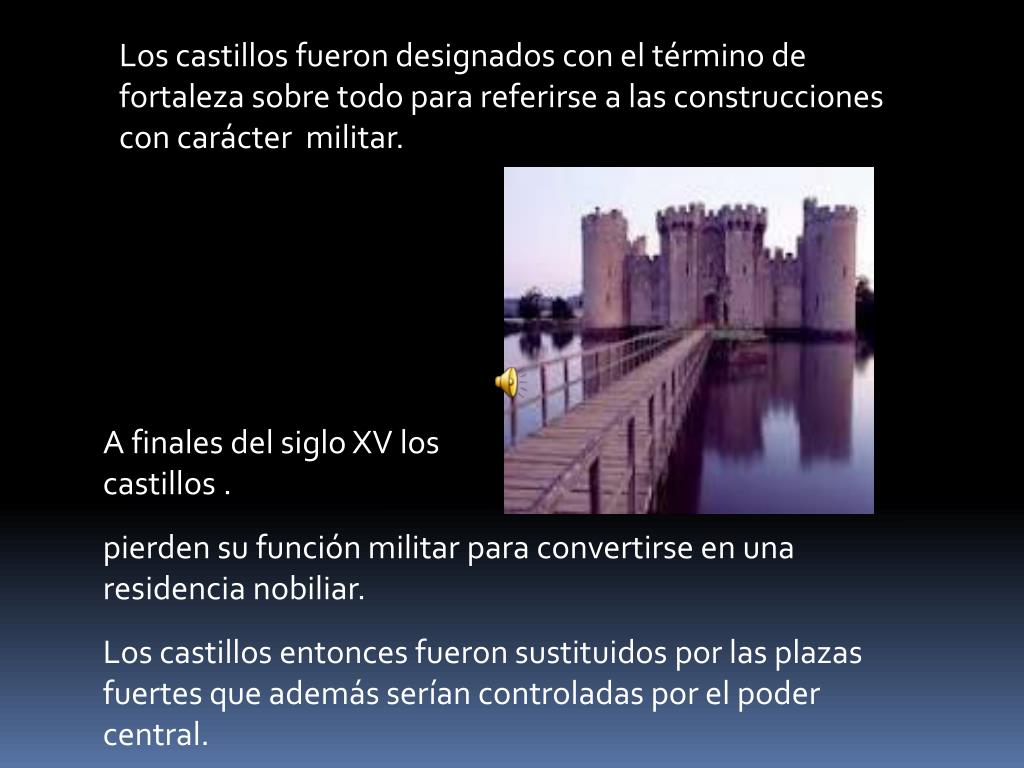 Los castillos fueron designados con el término de fortaleza sobre todo para referirse a las construcciones con carácter militar. A finales del siglo XV los castillos . pierden su función militar para convertirse en una residencia nobiliar. Los castillos entonces fueron sustituidos por las plazas fuertes que además serían controladas por el poder central.