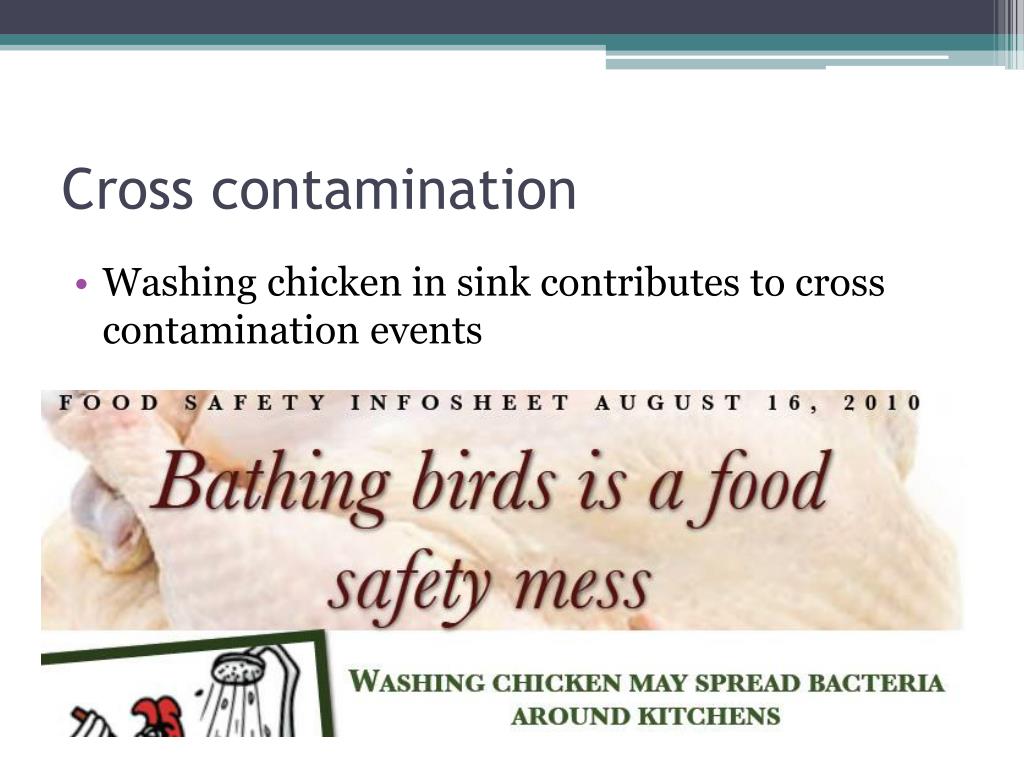 Cross contamination • Washing chicken in sink contributes to cross contamination events