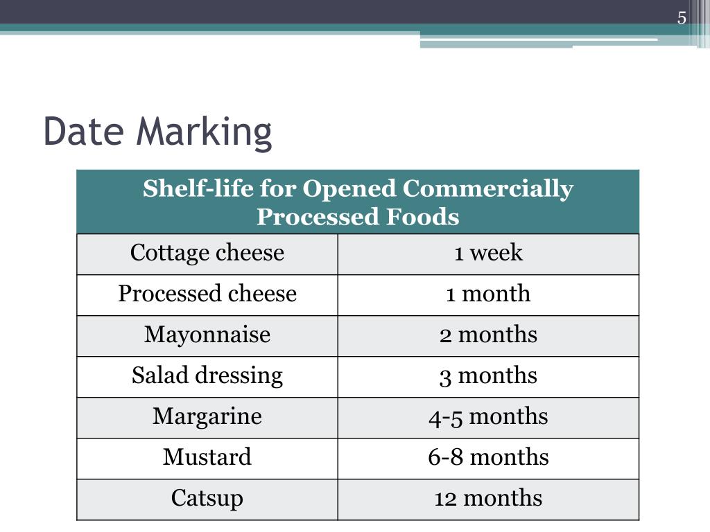 Leftovers Date Marking Pre-prepared foods Can be frozen for up to 4 weeks Cooked ground beef, spaghetti sauce Pre-prepared Name of Food Amount Date and time item was prepared • Can be refrigerated for up to 3 days • Pot of soup, hot dog chili, pre-portioned cheese containers • Leftover Name of Food • Amount • Date to be used by OR the date of preparation