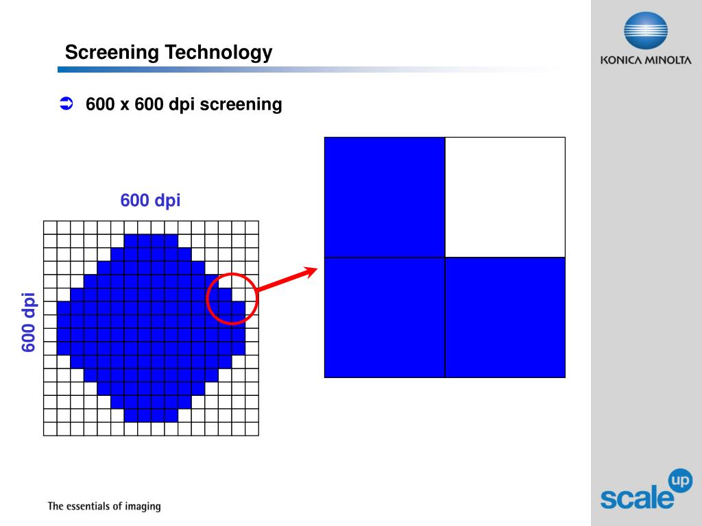 Screening Technology • 600 x 600 dpi screening 600 dpi 600 dpi