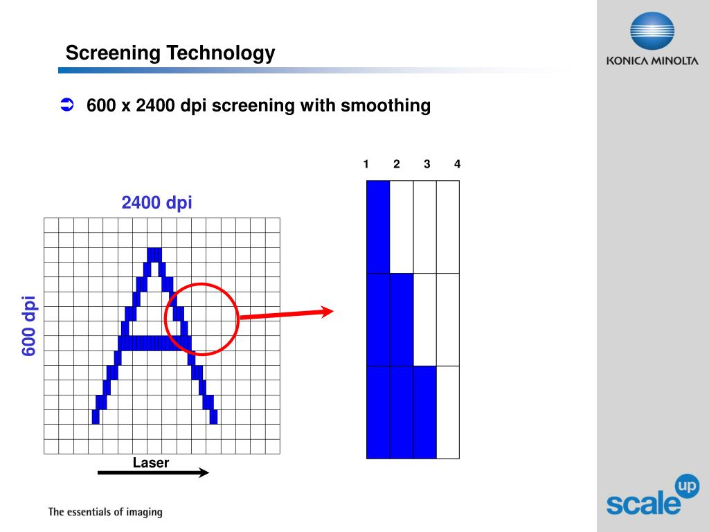 Screening Technology • 600 x 2400 dpi screening with smoothing 2400 dpi 600 dpi Laser