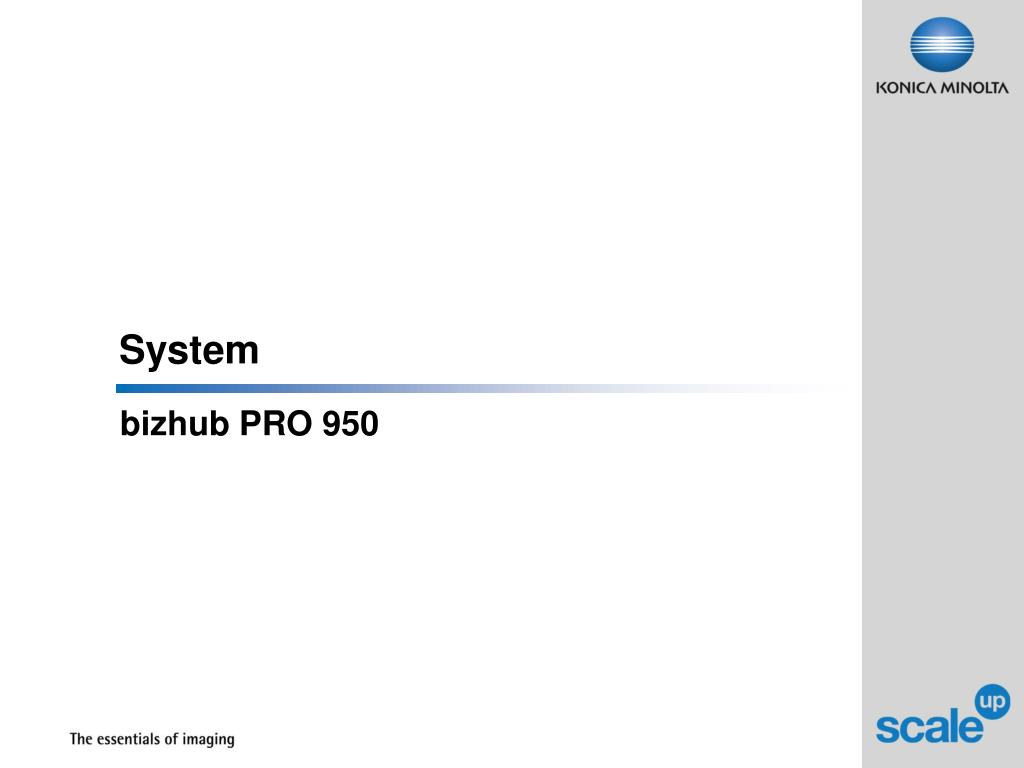 bizhub PRO 950. Product Presentation February 2009. Pauline Brooks Production Printing. Version 2.5.2. Product. Development Code Picasso-m Sales Code bizhub PRO 950 Portfolio Cluster Successor to bizhub PRO 920 Production device Launch date March 2009. RIP of bizhub PRO 1200.