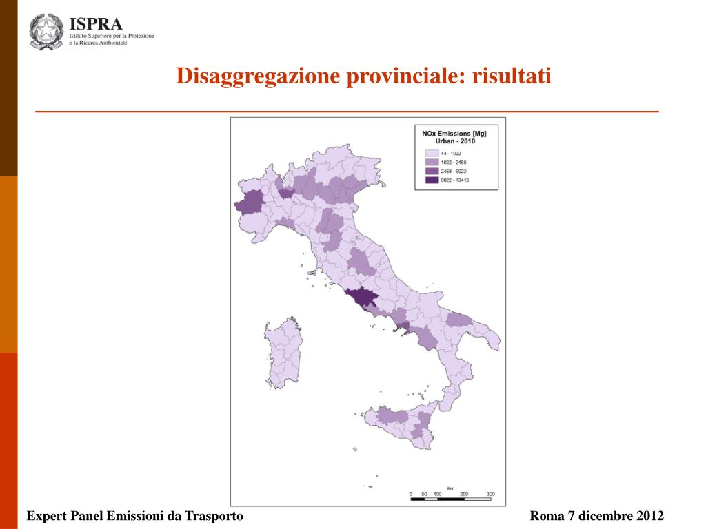 Disaggregazione provinciale: risultati Expert Panel Emissioni da Trasporto Roma 7 dicembre 2012