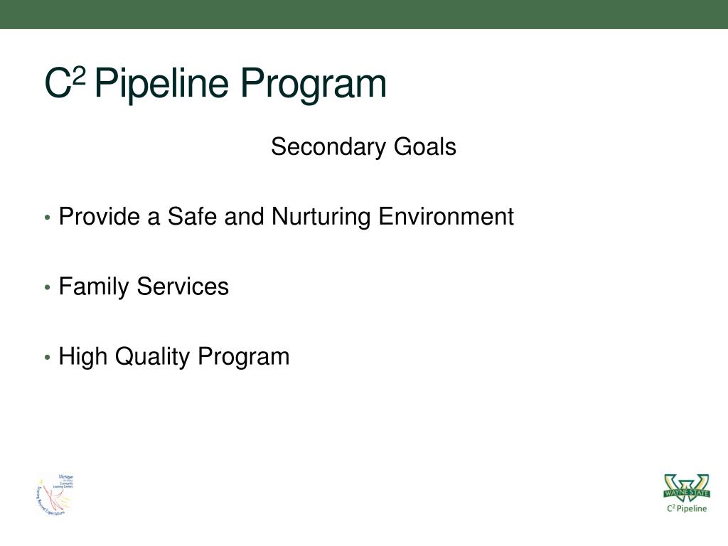 C2 Pipeline Program Secondary Goals • Provide a Safe and Nurturing Environment • Family Services • High Quality Program