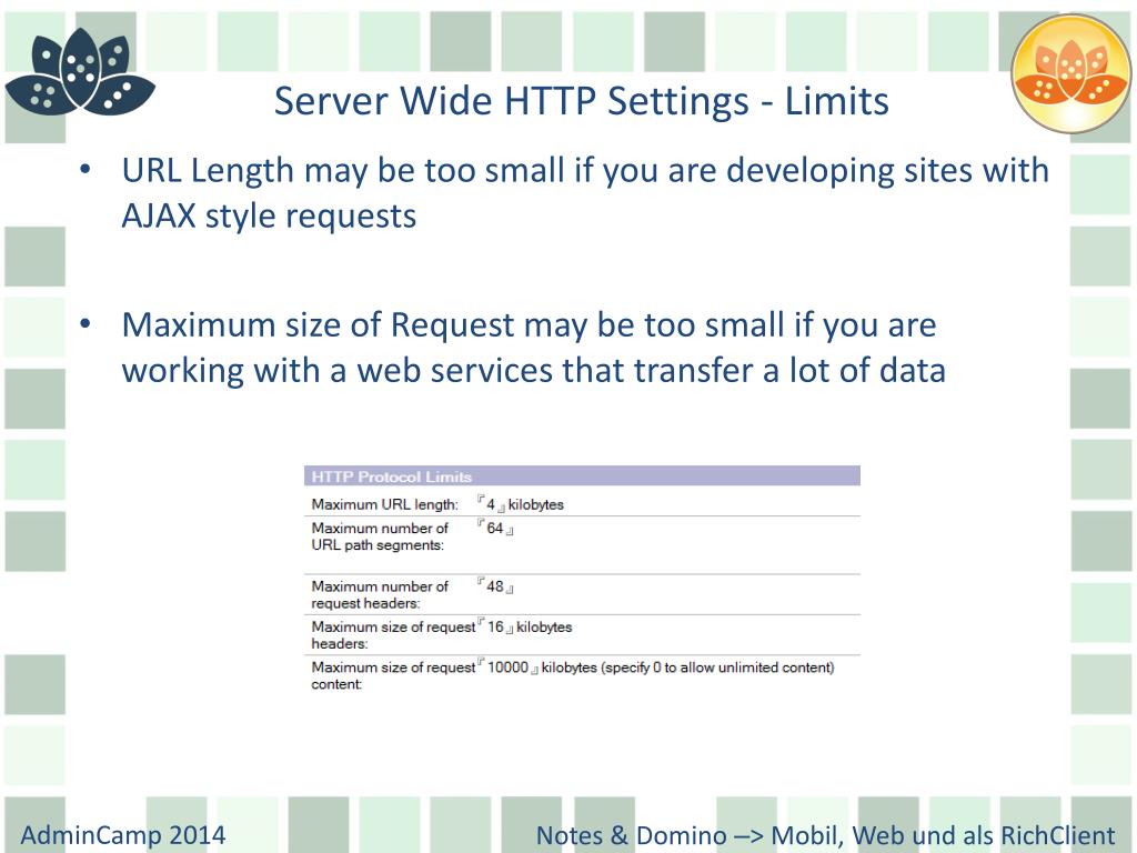 Server Wide HTTP Settings - Limits • URL Length may be too small if you are developing sites with AJAX style requests • Maximum size of Request may be too small if you are working with a web services that transfer a lot of data