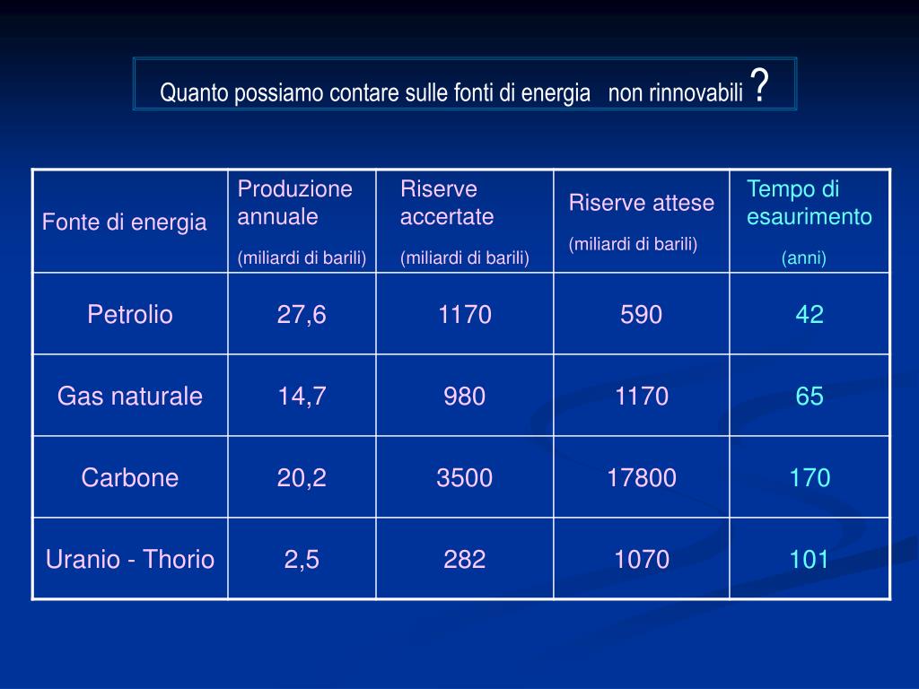 Quanto possiamo contare sulle fonti di energia non rinnovabili ?