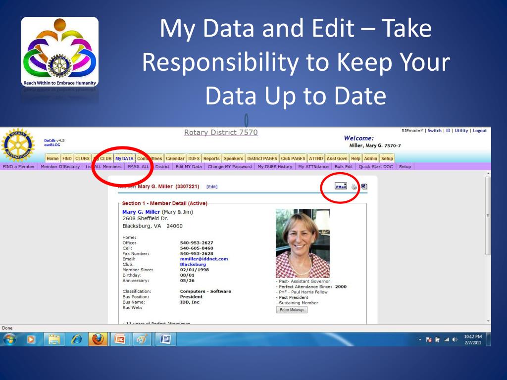 What I Ask of You • Maintain Your Personal Data • Review Your Club or Committee Data • Keep Your Club or Committee Data Up-to-Date • Review District Data • Contact Others • Individually http://www.rotary7570.org/ • By Title • As a Group • As a Committee http://www.rotary7570.org/