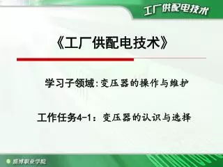 《工厂供配电技术》学习子领域:变压器的操作与维护 工作任务4-1:变压器的认识与选择