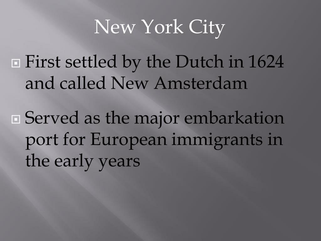 New York City • First settled by the Dutch in 1624 and called New Amsterdam • Served as the major embarkation port for European immigrants in the early years
