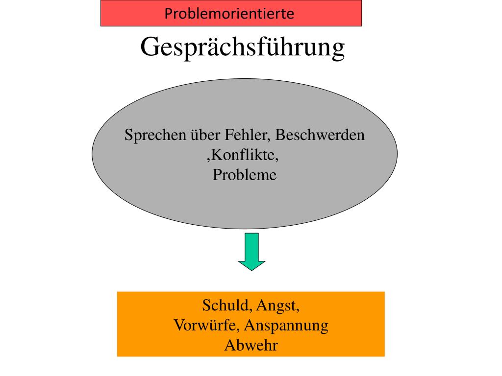 Problemorientierung vs. Lösungsorientierung Problem – Orientierung: Welche Probleme genau? Warum? Fragen nach Beschwerden, Symptomen, Auswirkungen, Entstehung, Ursachen, Schuld und Verantwortung, verwickelten Personen, etc. Wenn das Problem so ist- wie möchte ich damit umgehen? Was möchte ich tun? (Zielorientierung!) Was kann man anderes versuchen? Wann war es anders? Wofür könnte das Problem eine Lösung sein? Was ist gut an dem Problem? Lösungsorientierung