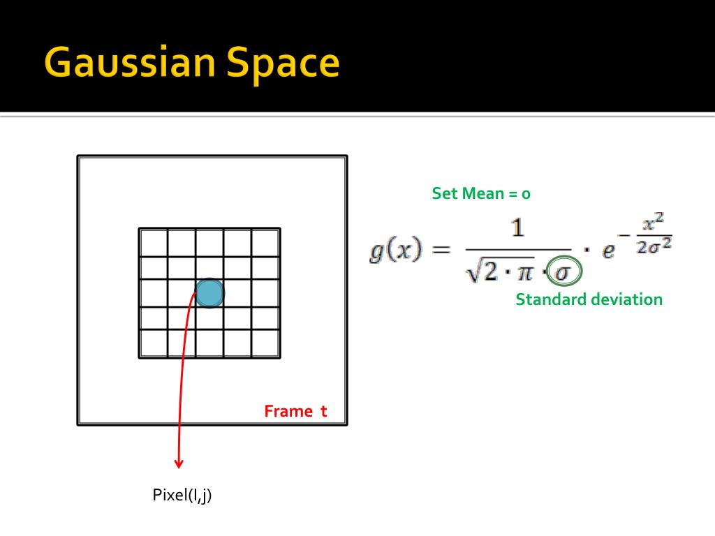 Gaussian Space Set Mean = 0 Standard deviation Frame t Pixel(I,j)