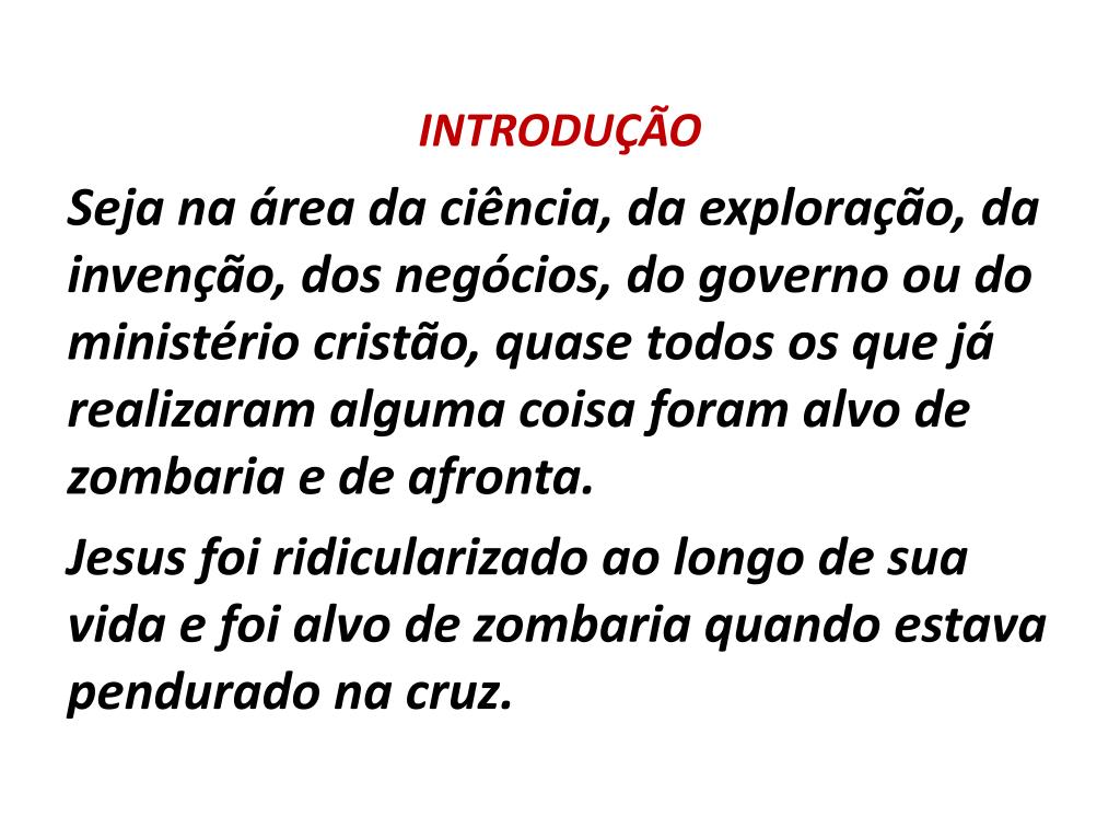 INTRODUÇÃO Seja na área da ciência, da exploração, da invenção, dos negócios, do governo ou do ministério cristão, quase todos os que já realizaram alguma coisa foram alvo de zombaria e de afronta. Jesus foi ridicularizado ao longo de sua vida e foi alvo de zombaria quando estava pendurado na cruz.