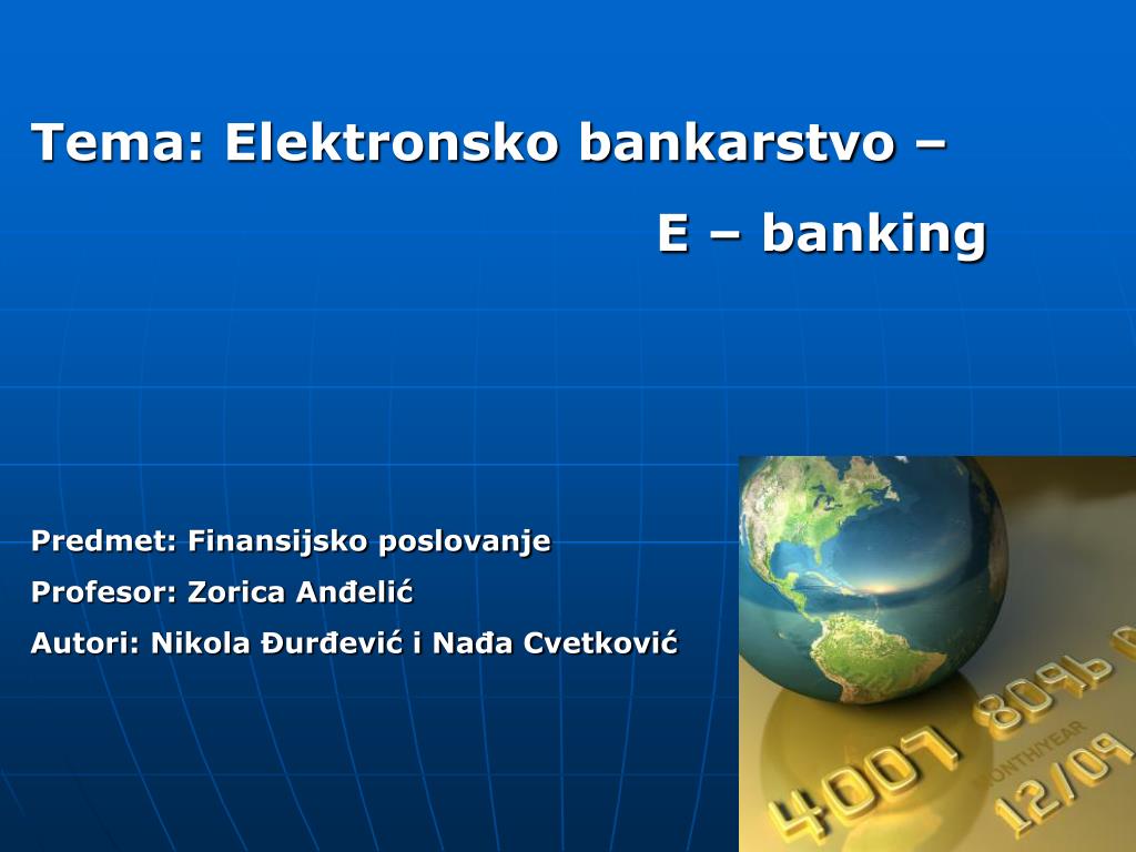 Tema: Elektronsko bankarstvo – E – banking Predmet: Finansijsko poslovanje Profesor: Zorica Anđelić Autori: Nikola Đurđević i Nađa Cvetković