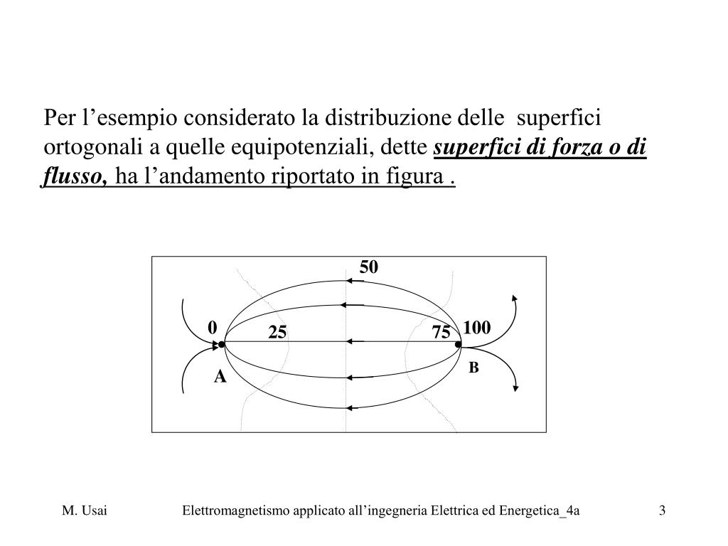 50 0 100 B A Per l’esempio considerato la distribuzione delle superfici ortogonali a quelle equipotenziali, dette superfici di forza o di flusso, ha l’andamento riportato in figura . 25 75 Elettromagnetismo applicato all’ingegneria Elettrica ed Energetica_4a