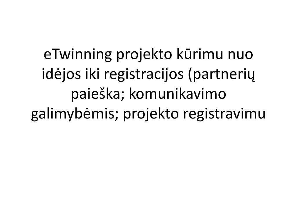 eTwinning projekto kūrimu nuo idėjos iki registracijos (partnerių paieška;komunikavimo galimybėmis;projekto registravimu