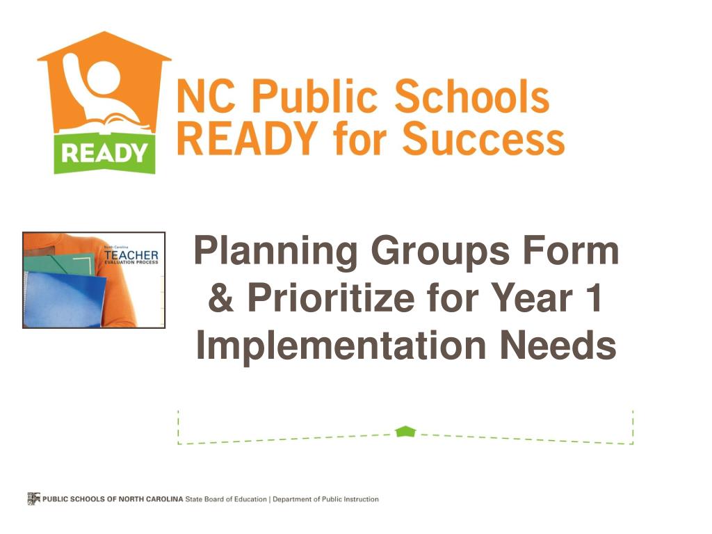 Planning Groups Form & Prioritize for Year 1 Implementation Needs