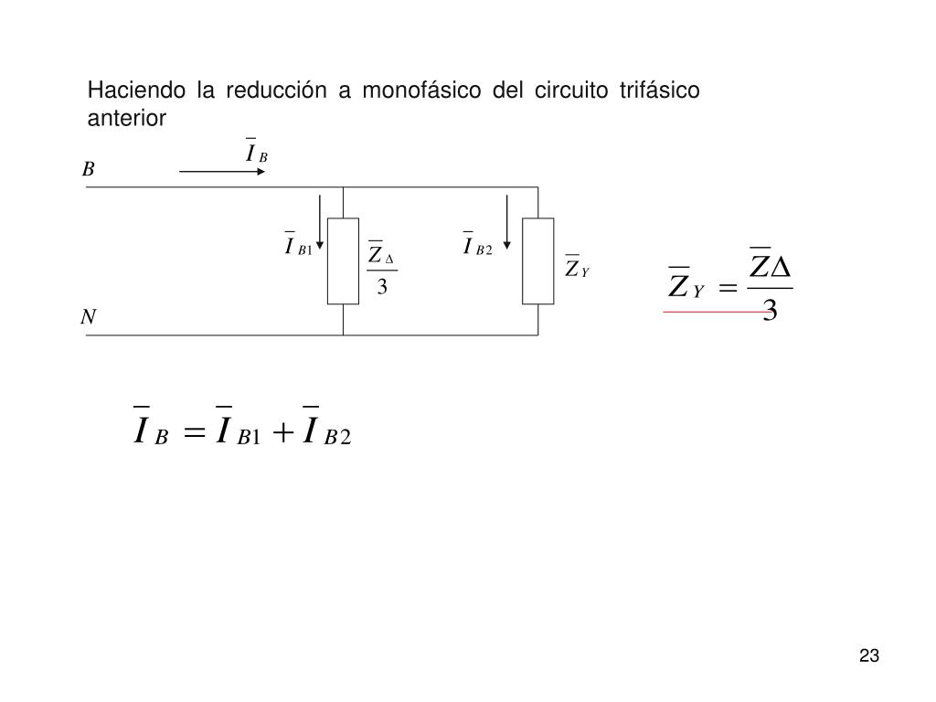 Haciendo la reducción a monofásico del circuito trifásico anterior