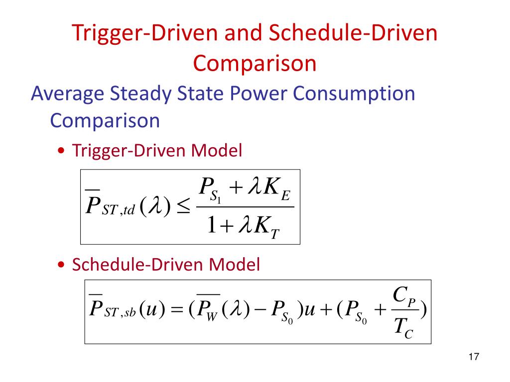 Trigger-Driven and Schedule-Driven Comparison Average Steady State Power Consumption Comparison • Trigger-Driven Model • Schedule-Driven Model
