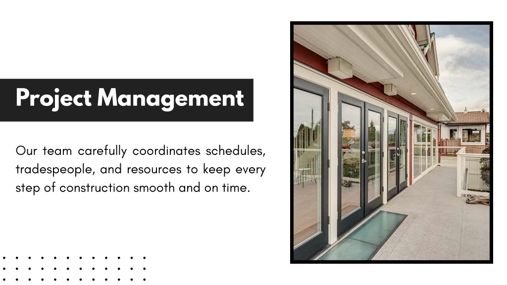 4. Project Management Our team carefully coordinates schedules, tradespeople, and resources to keep every step of construction smooth and on time.