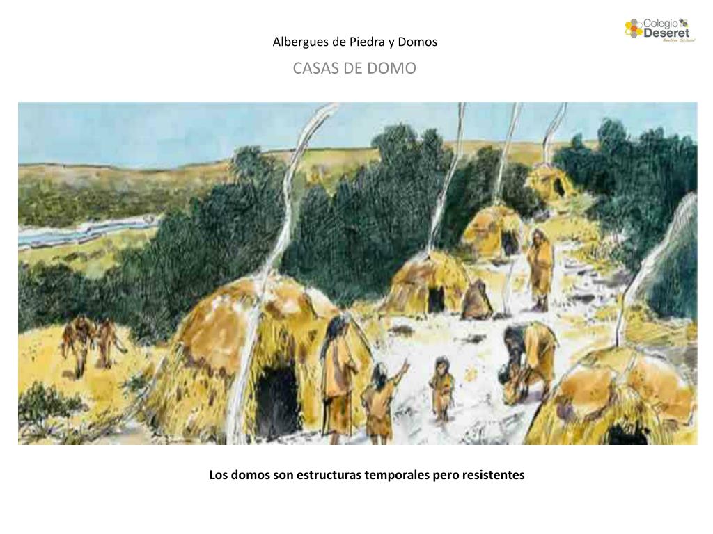Albergues de Piedra y Domos CASAS EN PIEDRA Los albergues de piedra eran parecidos a tener cuartos con vista panorámica los cuales eran muy cómodos para los habitantes prehistóricos. En esta escena una pequeña familia prehistórica camina por el río Pecos enfrente de lo que actualmente se llama Albergue Fate Bell. (Pintura de la artista ReedaPeel)