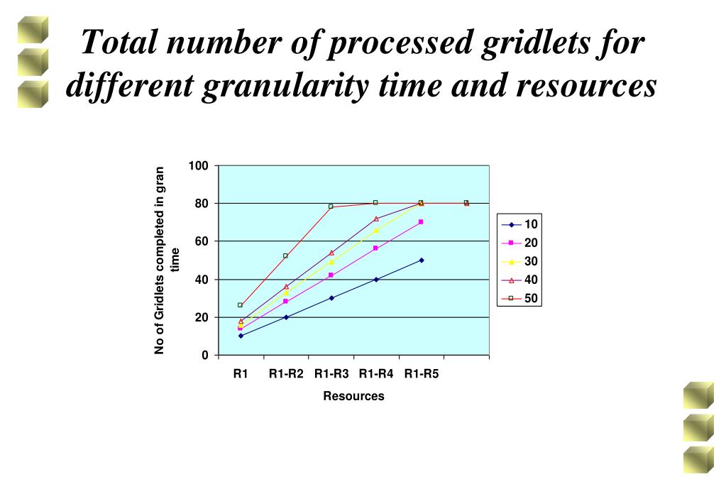4. Dynamic jobs • Dynamic submission of jobs is considered. • User can submit jobs when other jobs are being processed. • The unused MIPS rating of the resources can be utilized in a efficient way such that grouping is done by considering the unused MIPS as total MIPS and the jobs are processed. • Then Parallel Submission of grouped Gridlets to resources is done