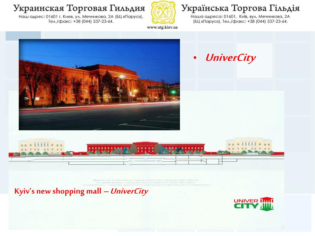 Outline financial information Kyiv’s new shopping mall – UniverCity