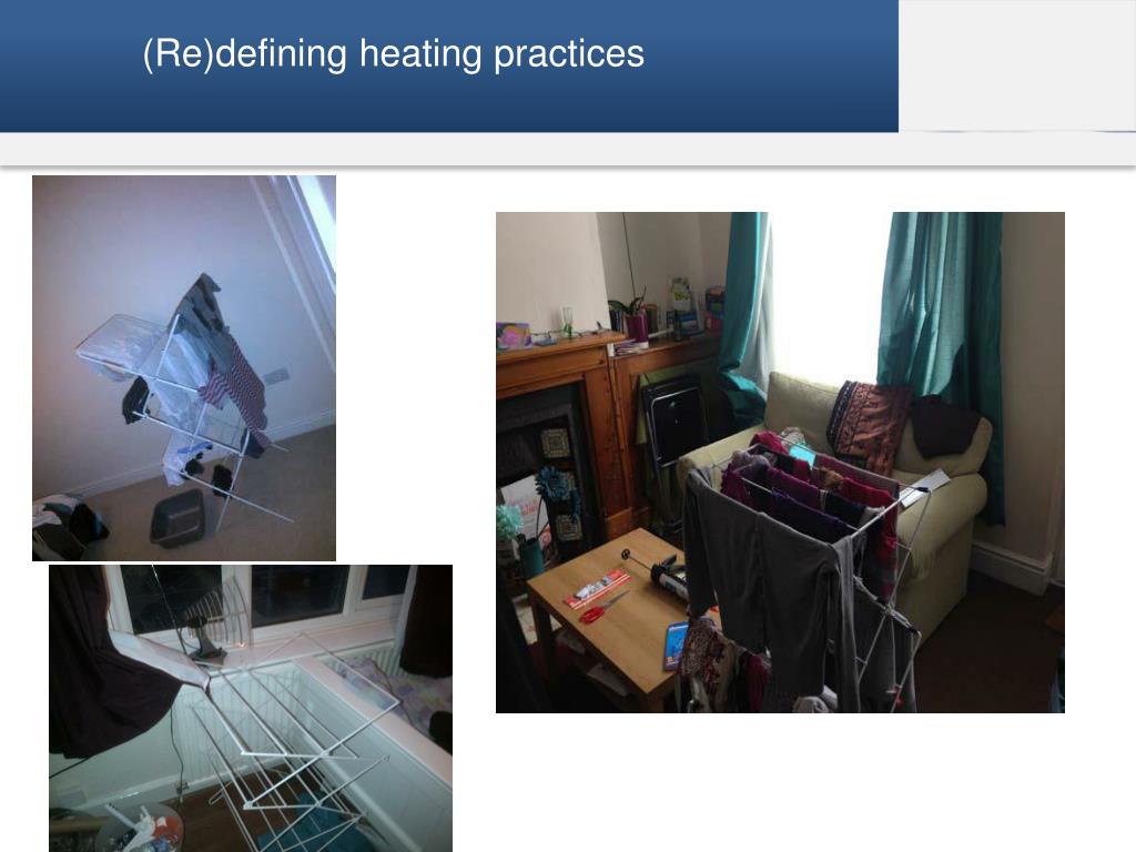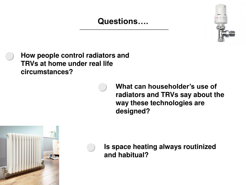 Questions…. How people control radiators and TRVs at home under real life circumstances? What can householder’s use of radiators and TRVs say about the way these technologies are designed? Is space heating always routinized and habitual?