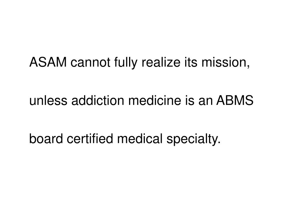 ASAM cannot fully realize its mission, unless addiction medicine is an ABMS board certified medical specialty.