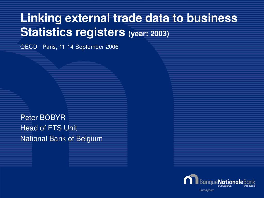 Linking external trade data to business Statistics registers (year: 2003)OECD - Paris, 11-14 September 2006 • Peter BOBYR • Head of FTS Unit • National Bank of Belgium
