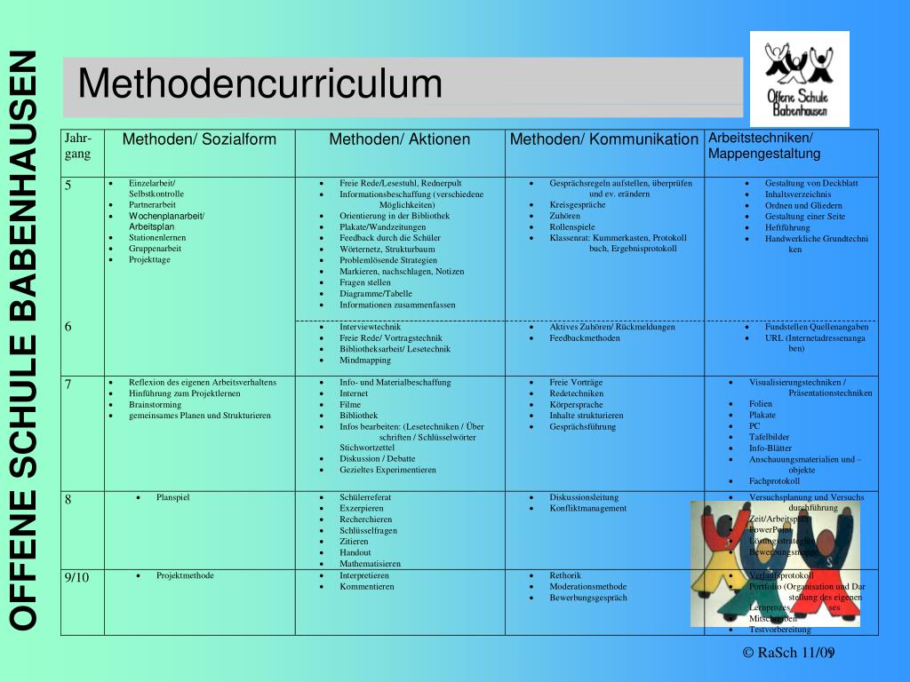 Gemeinsame Merkmale des Unterrichts Berufswahl- unterricht und Betriebs- praktikumim 9. Jg., in der Hauptschule in den Jg. 8 und 9 Projekt- unterricht in den Jg. 7–10 ( nur in R + H ) Methodentraining Fortführung aus der Grundschule und Erweiterung Praktisches Gestalten im Jahrgang 5 Ganztagsschule mit Mittags-, Nachmittags- und Freizeitangeboten Arbeit in Jahrgangsbereichen und Jahrgangsteams Wahlpflichtunterricht: fachübergreifend, handlungs- und projektorientiert