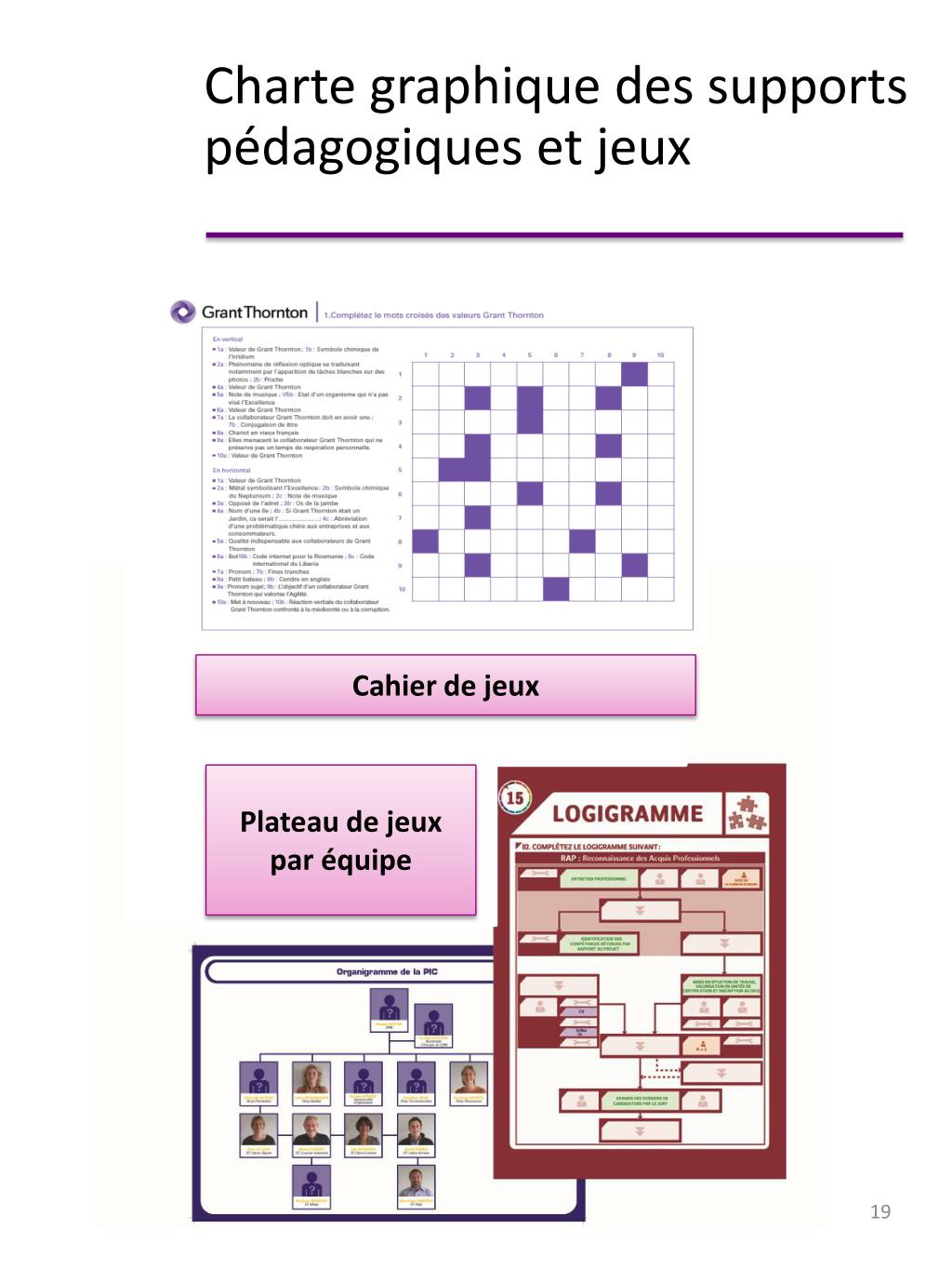 Charte graphique des supports pédagogiques et jeux Cahier de jeux Plateau de jeux par équipe IPFA Formation