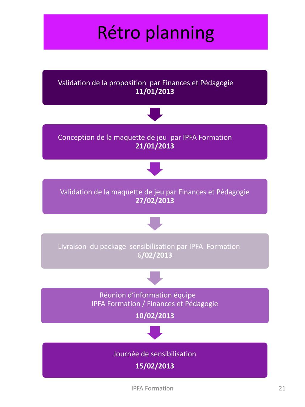 Rétro planning IPFA Formation