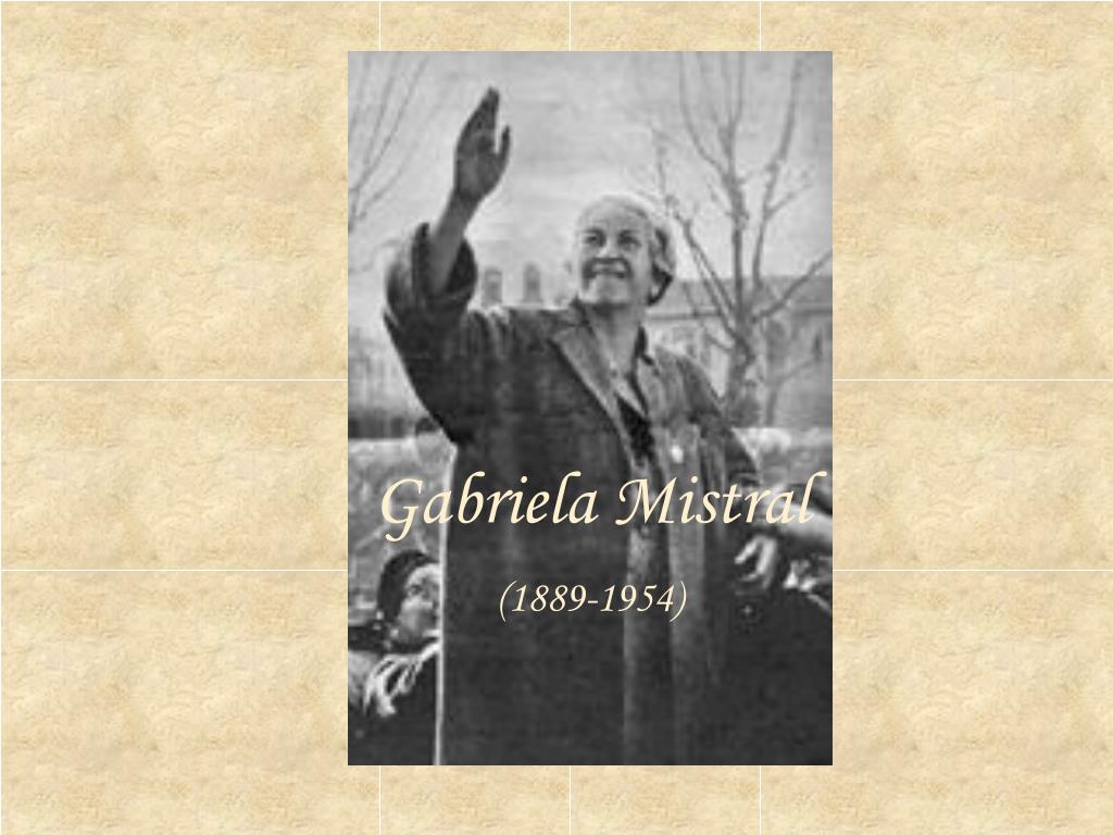 Biografía Escritora chilena nacida en Vicuña. Fue una destacada educadora que visitó México, donde cooperó en la reforma educacional, Estados Unidos y Europa, estudiando las escuelas y métodos educativos de estos países. Además fue profesora invitada en las universidades de Barnard, Middlebury y Puerto Rico. A partir de 1933, y durante veinte años, desempeñó el cargo de cónsul de su país en ciudades como Madrid, Lisboa y Los Ángeles, entre otras. Su poesía, llena de calidez y emoción y marcado misticismo, ha sido traducida al inglés, francés, italiano, alemán y sueco, e influyó en la obra creativa de muchos escritores latinoamericanos posteriores, como Pablo Neruda y Octavio Paz. Sus diversos poemas escritos para los niños se recitan y cantan en muy diversos países. En 1945 se convirtió en el primer escritor latinoamericano en recibir el Premio Nóbel de Literatura. Posteriormente, en 1951, se le concedió el Premio Nacional de Literatura. Hija de un profesor rural y con una hermanastra de la misma profesión, Gabriela Mistral, con temprana vocación por el magisterio, llegó a ser directora de varios liceos fiscales. Su fama como poetisa (aunque ella prefería llamarse -poeta) comenzó en 1914 luego de haber sido premiada en unos Juegos Florales por sus -Sonetos de la muerte-, inspirados en el suicidio de su gran amor, el joven Romelio Ureta. A este concurso se presentó con el seudónimo que desde entonces la acompañaría toda su vida. A su primer libro de poemas, Desolación (1922), le siguieron Ternura (1924), Tala (1938), Lagar (1954) y otros.