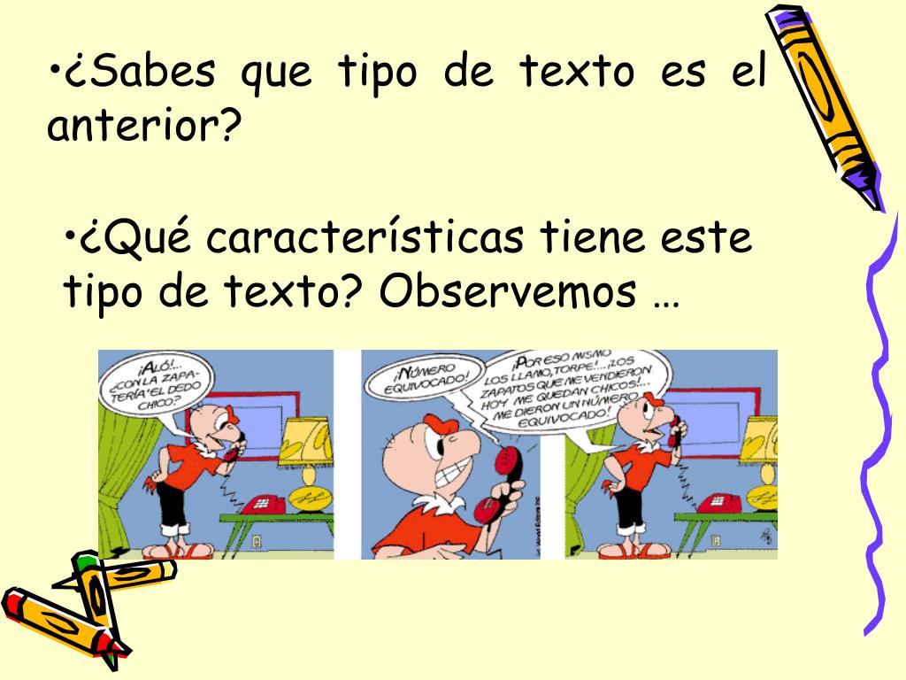 ¿Sabes que tipo de texto es el anterior? • ¿Qué características tiene este tipo de texto? Observemos …