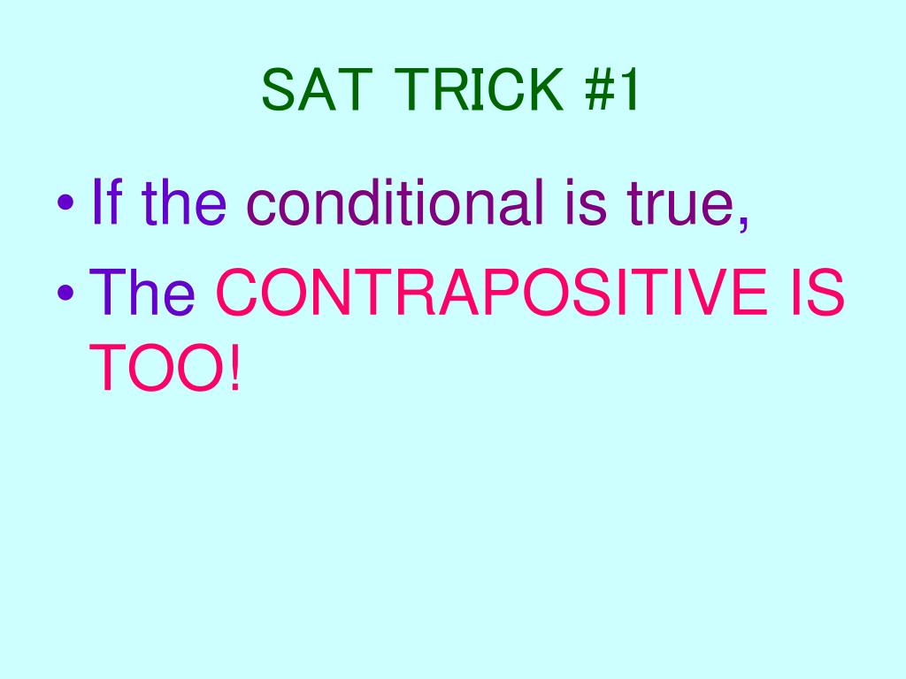 SAT TRICK #1 • If the conditional is true, • The CONTRAPOSITIVE IS TOO!