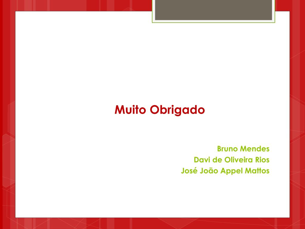 Muito Obrigado Bruno Mendes Davi de Oliveira Rios José João Appel Mattos