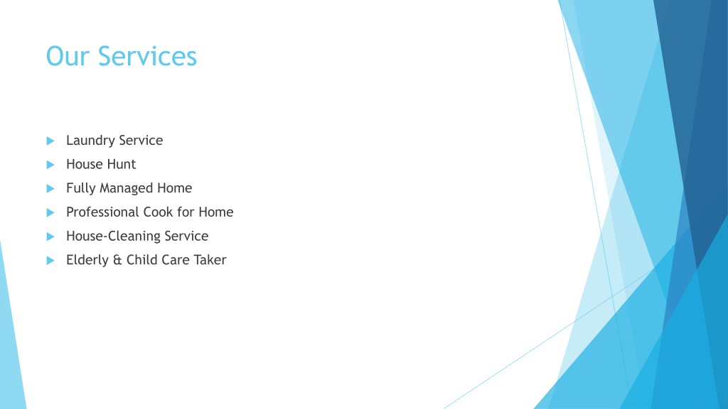 Our Services • Laundry Service • House Hunt • Fully Managed Home • Professional Cook for Home • House-Cleaning Service • Elderly & Child Care Taker